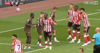 勒费主罚点球骗过门将将球打进,桑德兰1-1布伦特福德。↓